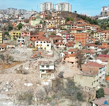 Kentsel dönüşüm; deprem riski taşıyan veya ömrünü tamamlamış yapıların yıkılarak, yerine daha dayanıklı ve modern binaların inşa edilmesi sürecidir.